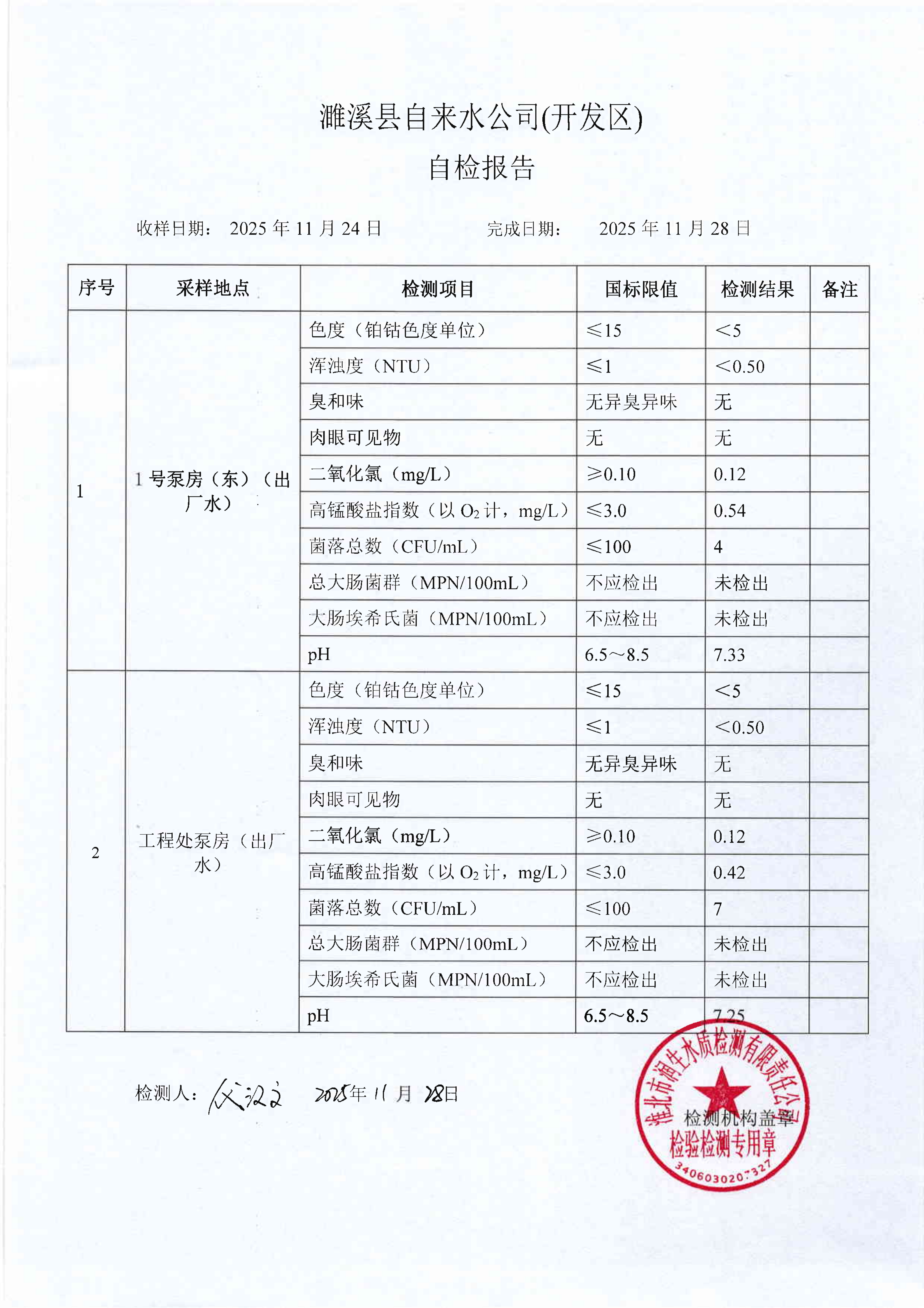 2025年11月第5周自检报告(出厂水)